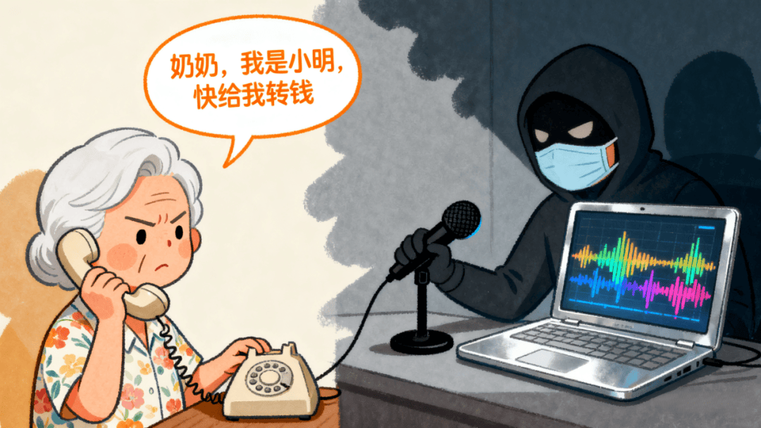 AI拟声:诈骗分子通过给受害人拨打骚扰电话,提取受害人声音,对声音素材进行合成,用伪造的声音实施诈骗。